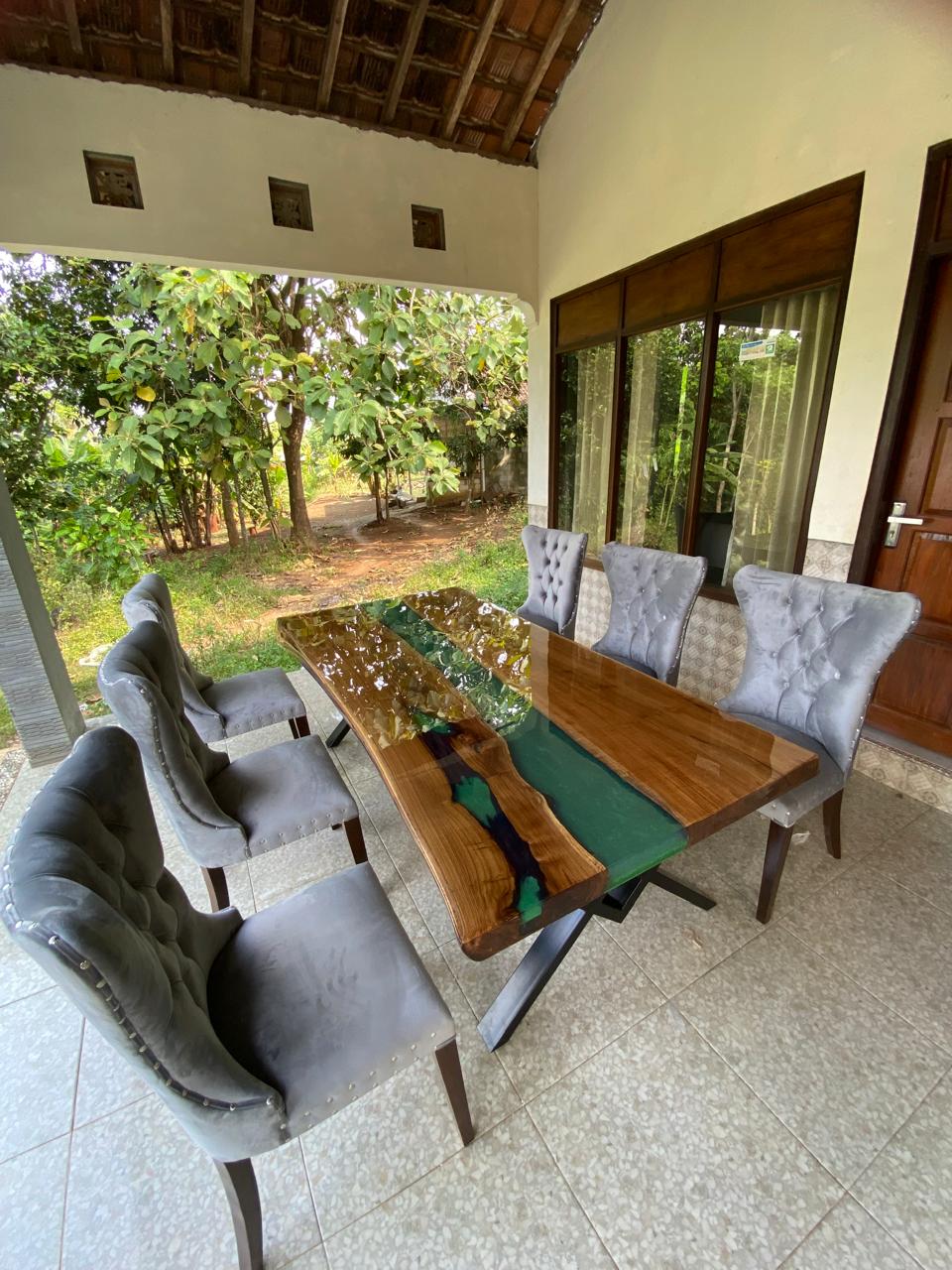 Jade River | Hardwood & Resin Dining Table – Handcrafted Teak Elegance by Van Java Furniture