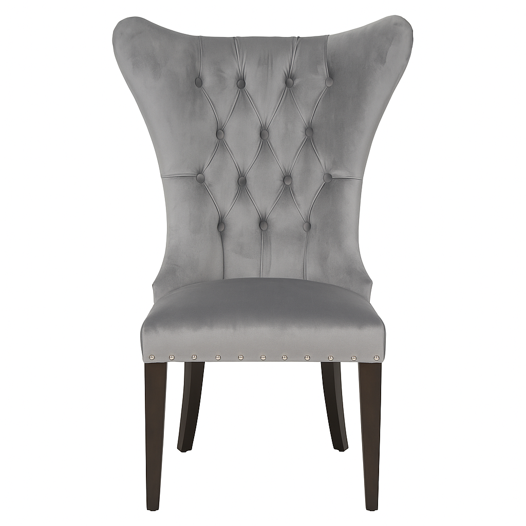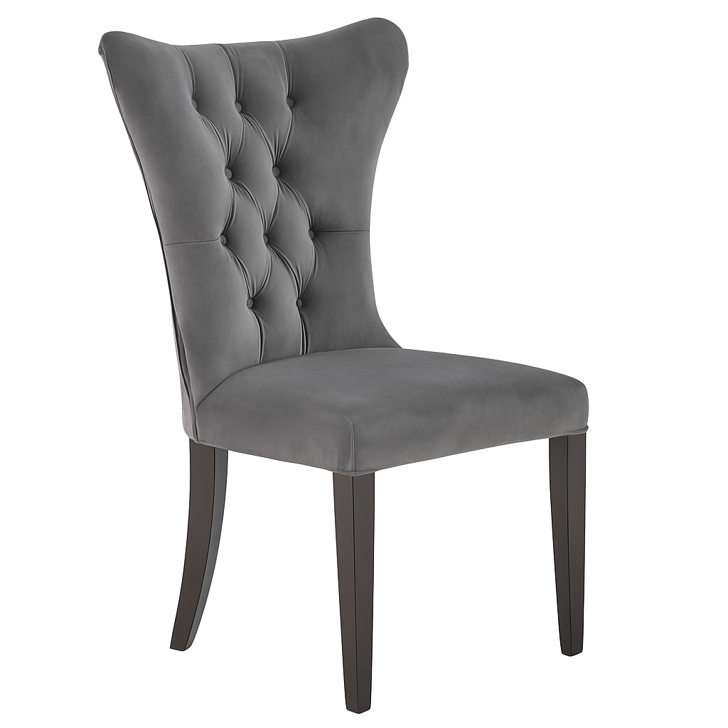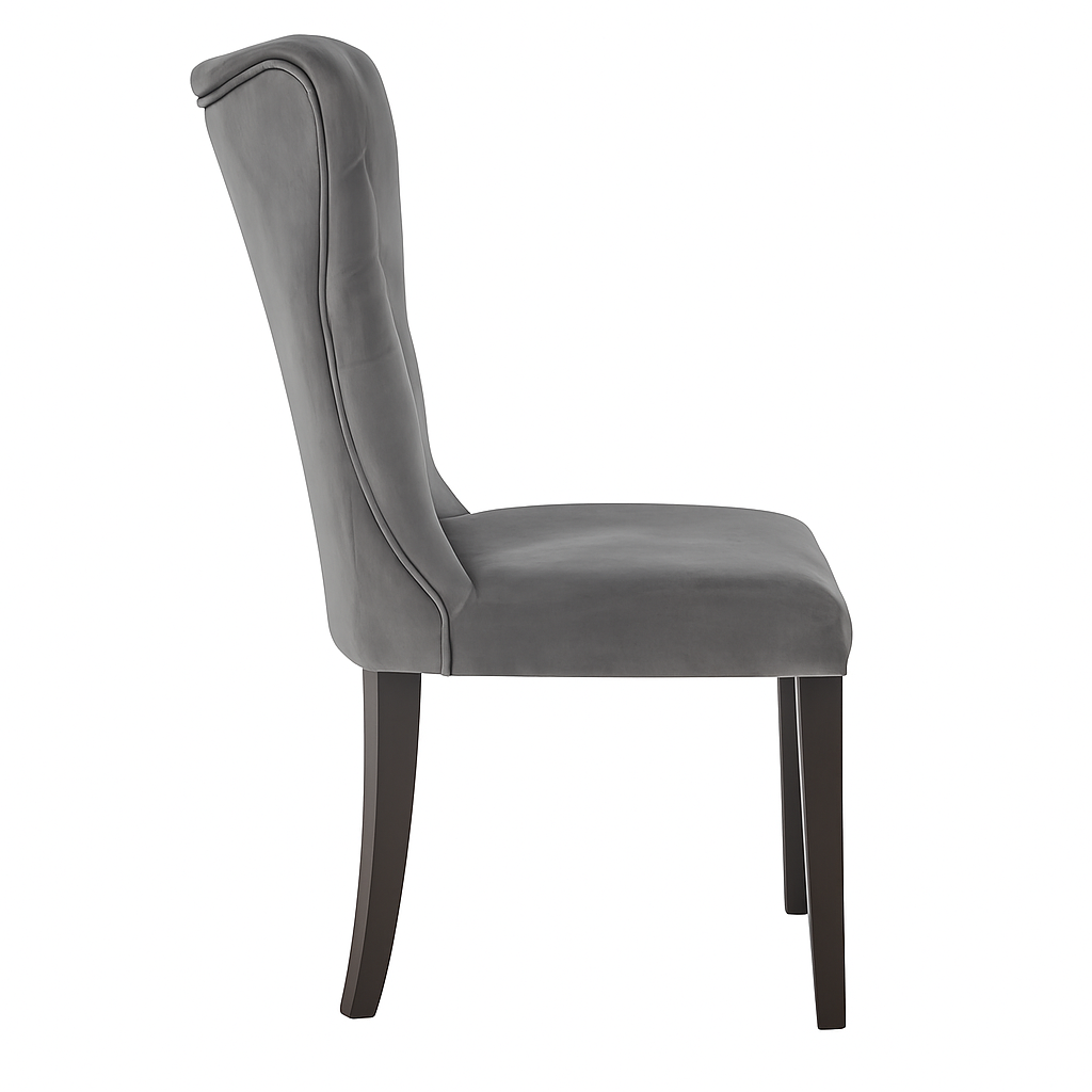 Pewter Velvet Dining Chairs – Upholstered High Back Seating with Solid Wood Legs | Modern Luxury Dining Furniture UK